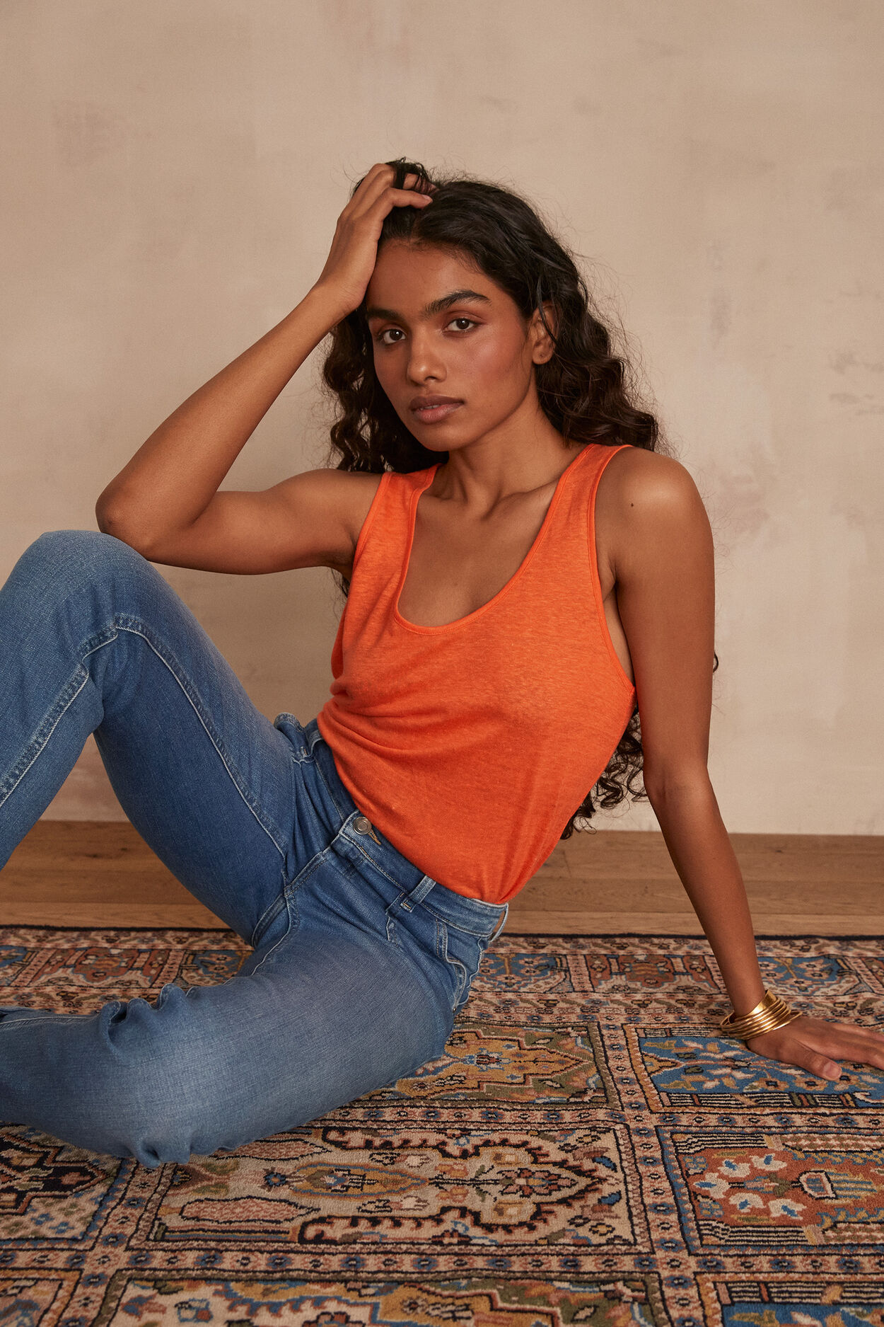 WECARE: This vest top is made from responsible linen. A real basic for your summer wardrobe, discover DAPHNEE, our linen vest top.