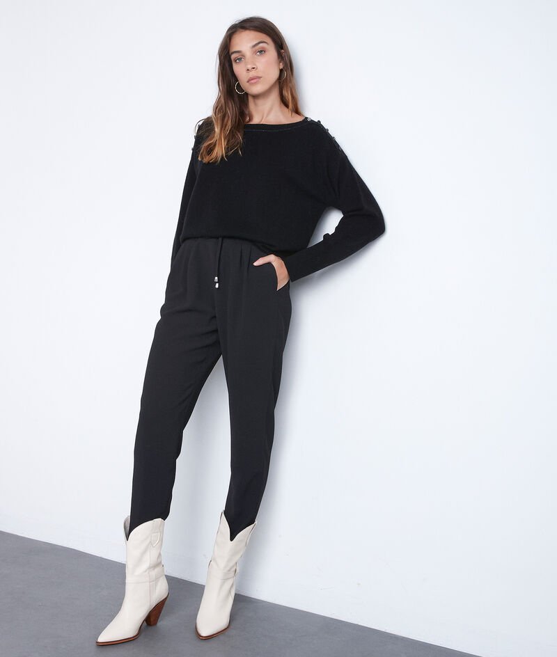 Flynn black crepe tie trousers