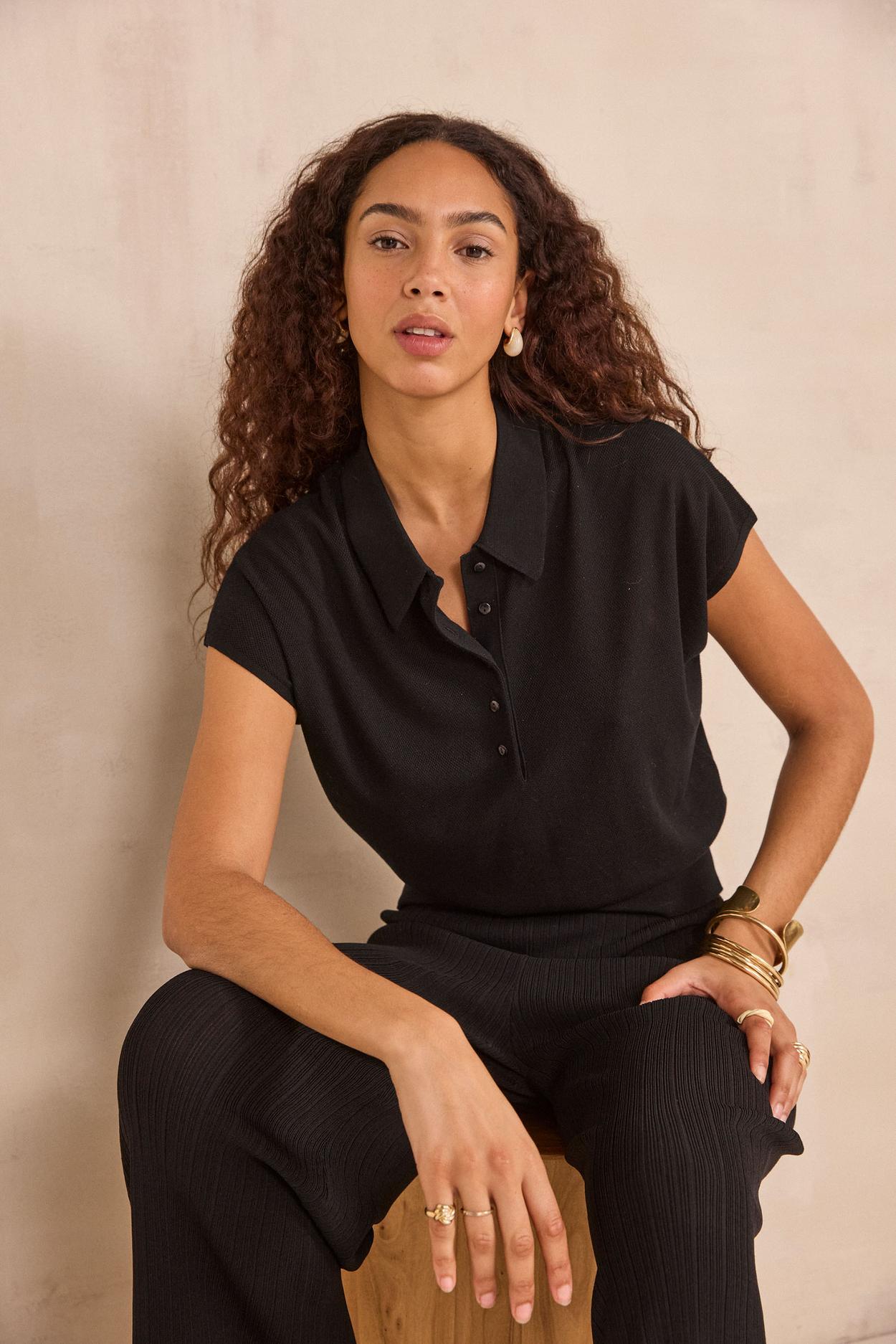Fall for the PAIGE short-sleeved sweater in fine knit, in elegant black.